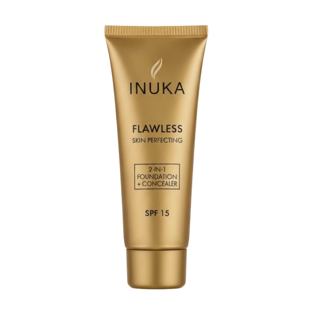 A INUKA Flawless Skin Perfecting Foundation oferece uma cobertura média e modulável, garantindo um acabamento perfeito, natural e de longa duração.