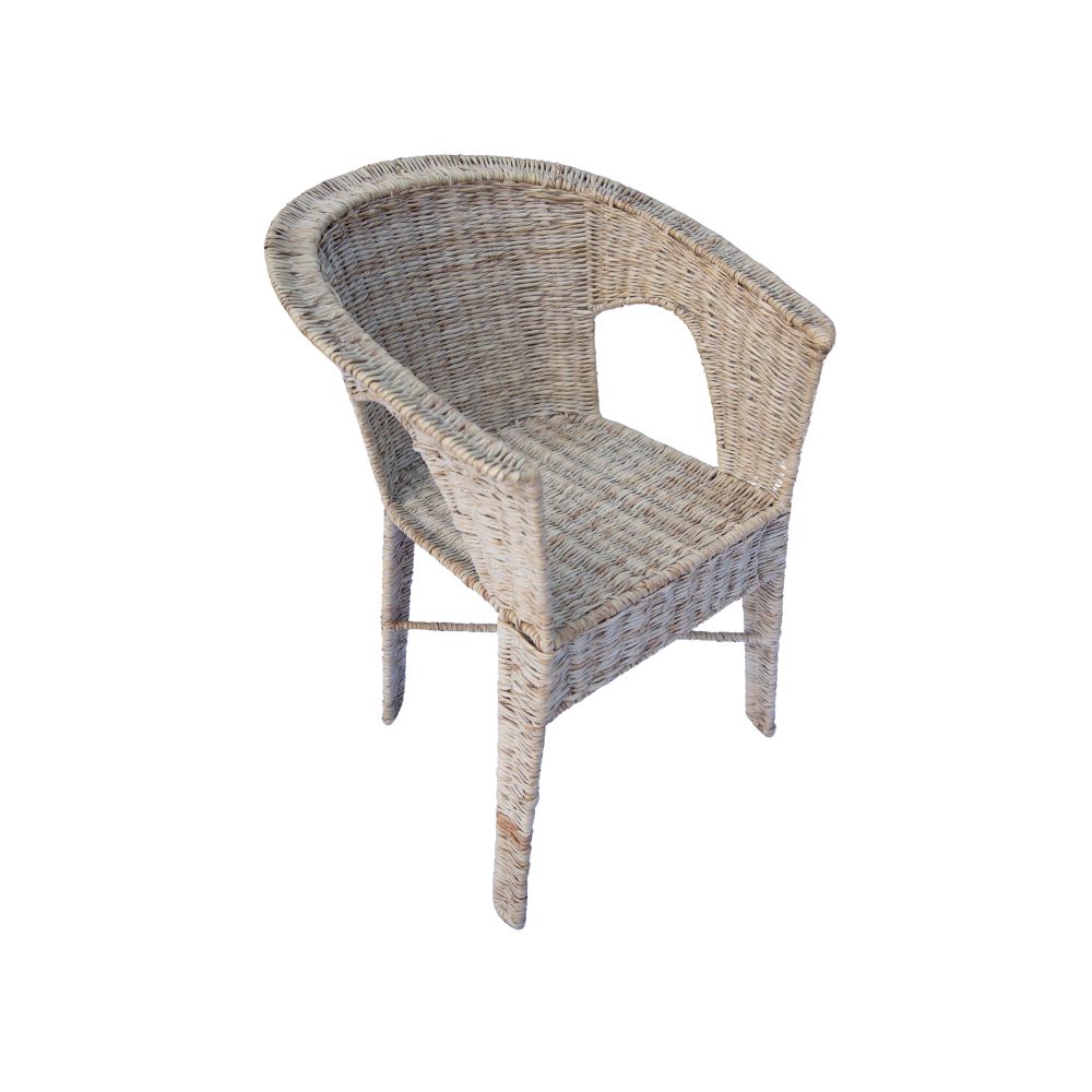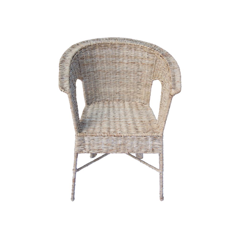 Espreguiçadeira de palha com estrutura metálica interna e acabamento em tom bege claro. Ideal para uso em áreas internas ou externas cobertas, como varandas e salas de estar. Apresenta estilo rústico e natural, oferecendo conforto e elegância, com manutenção simples e vida útil prolongada quando bem cuidada.