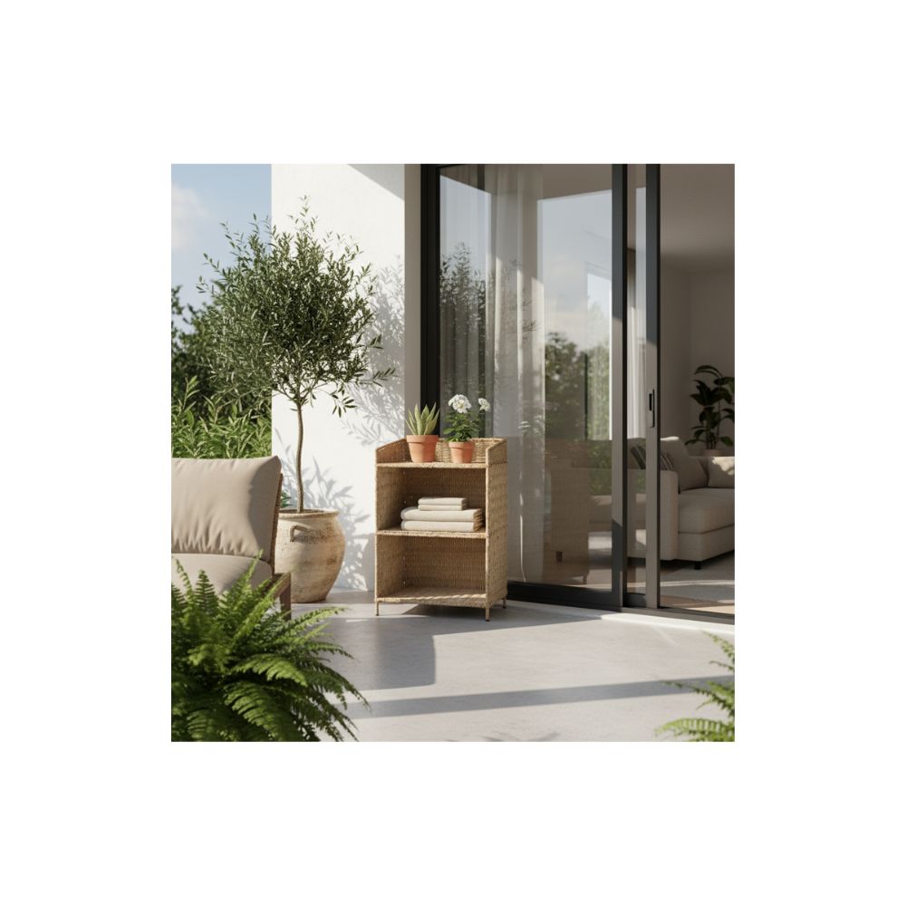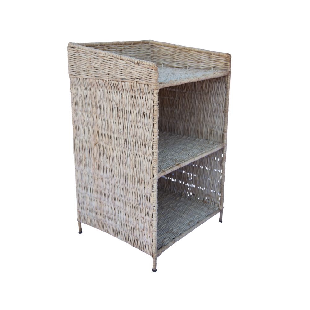 Handmade straw headboard with three levels, ideal for indoor environments such as living rooms, bedrooms or offices. Made with intertwined weave in beige color, it offers rustic style and functionality for organization. Although it has a long durability indoors, it is sensitive to humidity and the sun, requiring simple maintenance with a dry cloth. Not recommended for prolonged outdoor use.