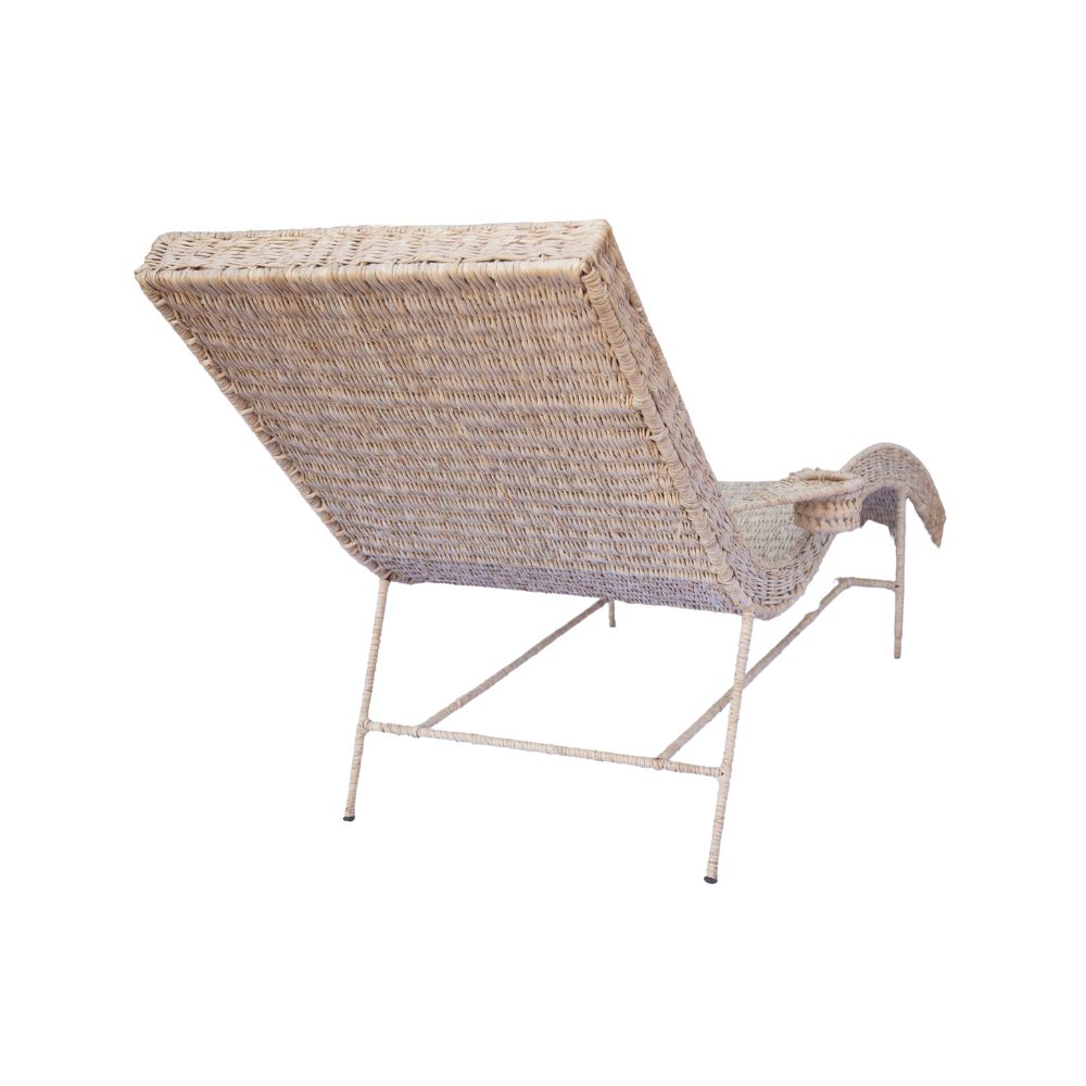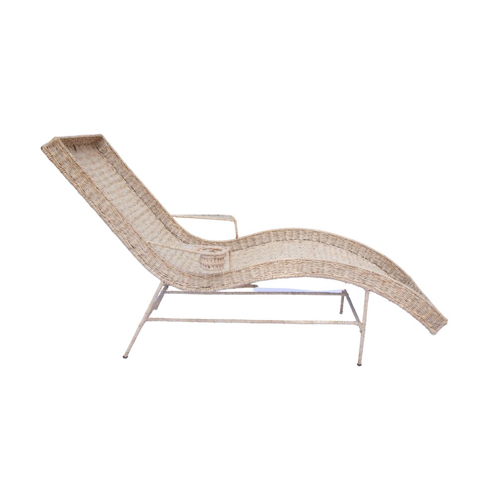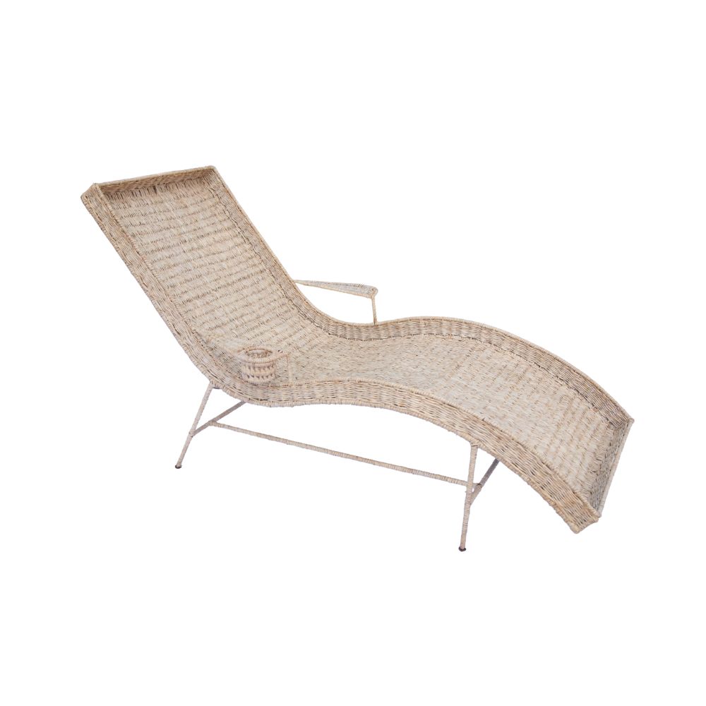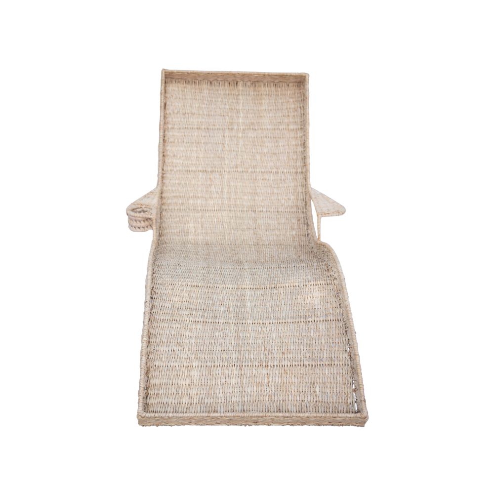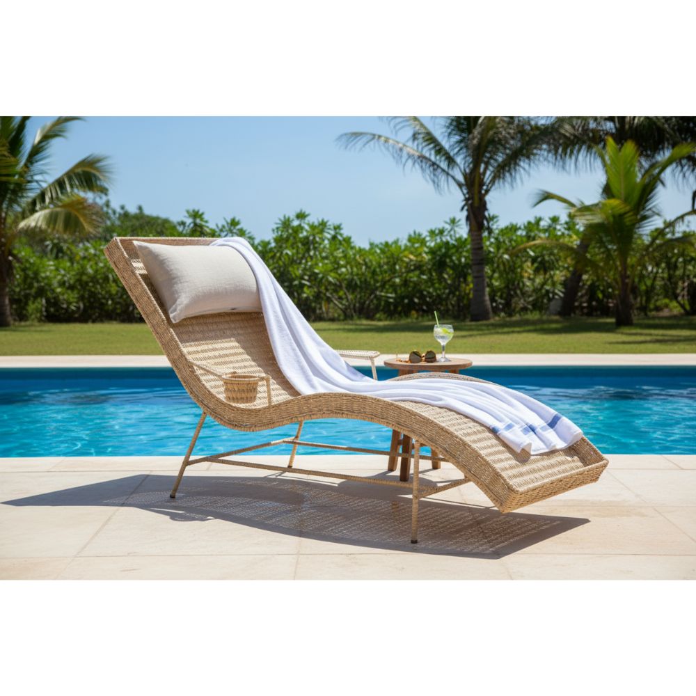 Handmade straw pool bed - with folding back. With a metal structure, ergonomic design and braided weave in beige color. Ideal for outdoor areas such as gardens, balconies or pool spaces, providing comfort for rest and relaxation. It requires care against humidity and prolonged sun exposure to maintain its durability.