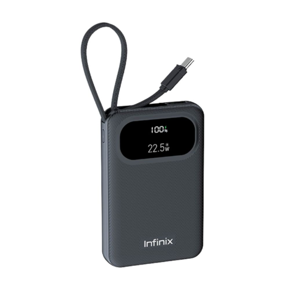 The INFINIX Power Bank XP10 Pro (XPOWER 10 PRO) 10000mAh – 22.5W is a high-performance portable battery, ideal for those who need fast and efficient recharging on the go. With a power of up to 22.5W, multiple outputs (USB-A, USB-C and built-in cable) and compact design, it offers practicality, security and compatibility with various devices. Perfect for everyday use with style and reliability.