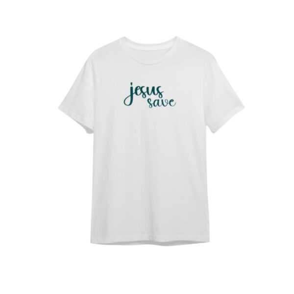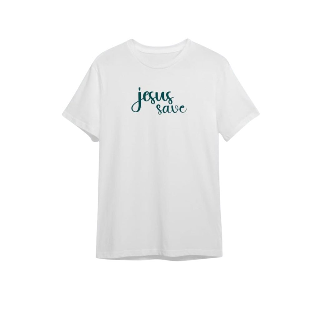 Mostre a sua fé com a T-shirt Unissexo "Jesus Save" na cor branca. Esta t-shirt combina conforto, estilo e uma mensagem poderosa, perfeita para o dia a dia ou para ocasiões especiais. Fabricada com materiais de alta qualidade, garante durabilidade e um toque suave na pele. Ideal para quem busca expressar sua crença de forma autêntica e moderna.