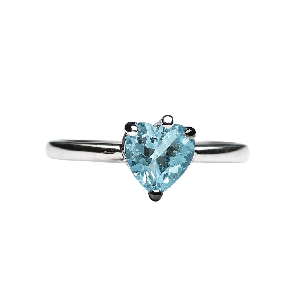 This delicate ring stands out for its romantic and sophisticated design. It features a heart-shaped gemstone with a light blue hue, finely cut to maximize brilliance. The stone is firmly held by discreet claws in a polished metal bezel, giving it a modern and refined finish. Ideal as a symbolic gift of love or as a standout accessory in everyday life.