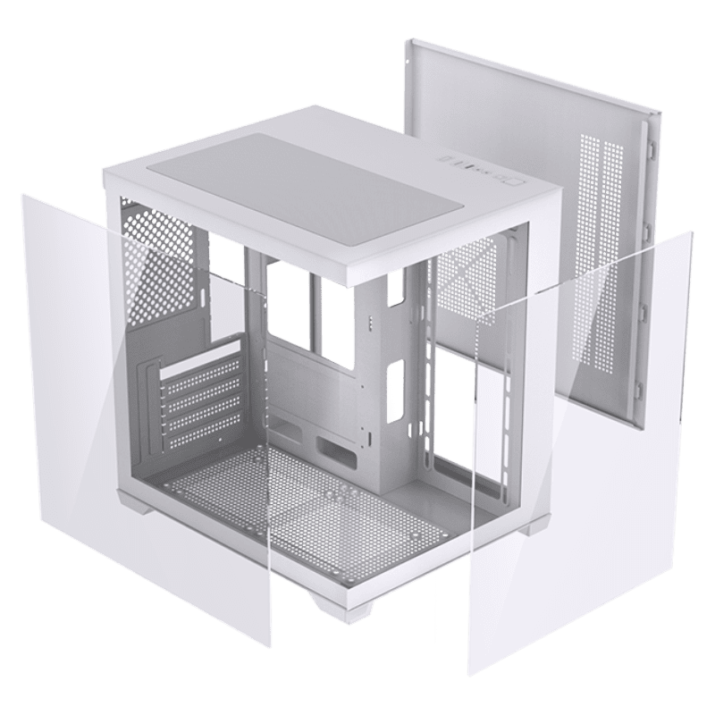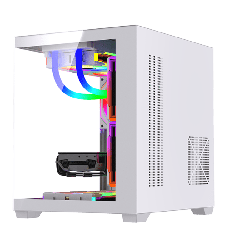 Gabinete LOVINGCOOL 2025 Micro-ATX/ITX Mid Tower, feito em liga de alumínio e vidro temperado composto. Design moderno, excelente ventilação, compatível com refrigeração líquida e iluminação RGB. Perfeito para PCs gamers compactos e de alto desempenho.